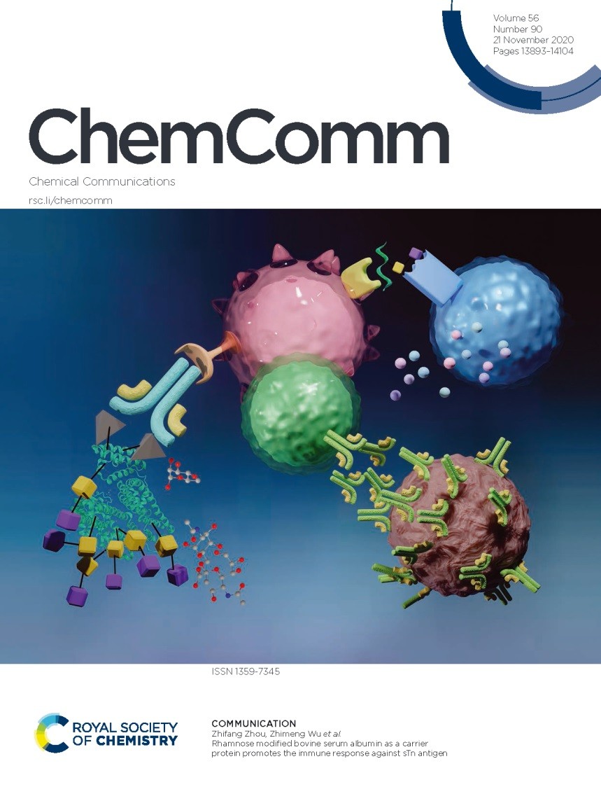 近期,我校88038威尼斯检测中心糖化学与生物技术教育部重点实验室吴志猛教授团队在肿瘤相关糖类疫苗研究方面取得重要进展,研究成果“Rhamnose modified bovine serum albumin as a carrier protein promotes the immuneresponse against sTn antigen”正式发表于Chemical Communications (Top 期刊,IF =/info/1021/ /5.996) (https://doi.org/10.1039/D0CC05263A),并被评选为封面论文(Front Cover)。