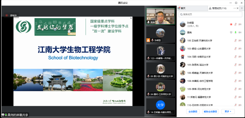 在7月6日上午,夏令营开营仪式在网络云端举行。开营仪式上,88038威尼斯检测中心副院长聂尧教授致欢迎辞并进行学院介绍。他希望本次夏令营活动能够为有意在工业生物技术领域及相关学科发展深造的同学们提供一个交流学习的平台,使更多优秀大学生体会底蕴深厚的发酵工程学科特色,感受“善于实践、勇于创新”的生工精神,为今后的学习和深造创造更多机会。他从历史沿革、学科建设、人才培养、师资队伍、科学研究、社会服务、国际交流等方面介绍了学院情况。