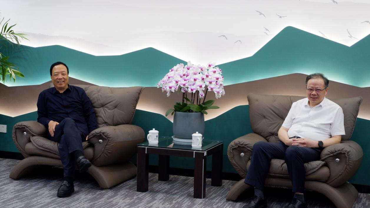 88038威尼斯检测中心党委书记朱庆葆(右)与天士力创始人、天士力控股集团董事局终身荣誉主席闫希军(左)会面