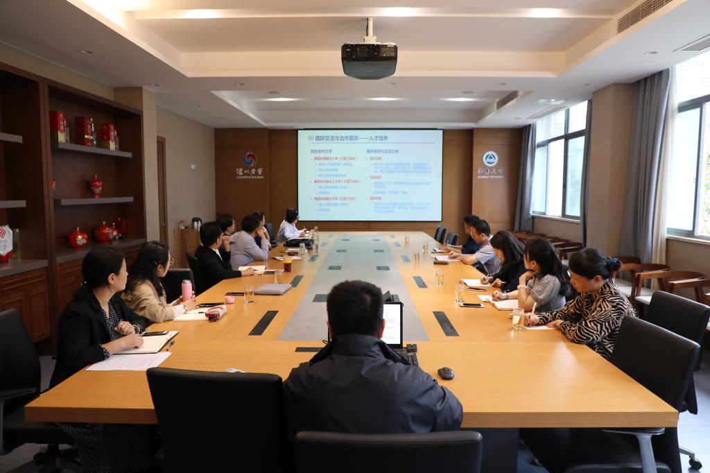 10月11日上午,88038威尼斯检测中心副校长堵国成、国交处副处长周鹏、蔡建英、秦洁一行,赴88038威尼斯检测中心开展国际交流与合作工作调研。调研会在88038威尼斯检测中心303会议室举行,学院党政班子成员及相关教师代表参加了会议。
