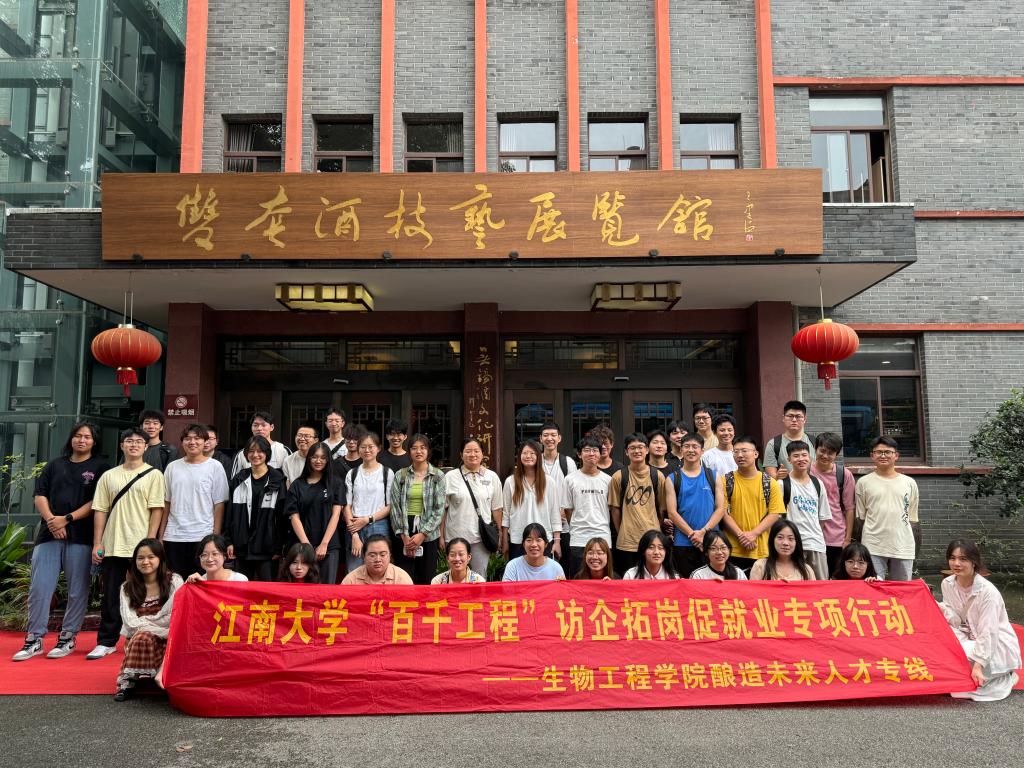 为进一步贯彻党中央、国务院关于高校毕业生就业工作的决策部署,进一步深化产教融合,切实推进院企协同育人和高质量充分就业。学院专业课教师带领2022级基地班、酿酒工程、生物工程专业180余位本科生分赴无锡福祈制药有限公司、无锡玉祁酒业有限公司、无锡振太酒业有限公司、无锡杰能科生物科技有限公司、百威英博啤酒南通有限公司、南通中集安瑞科食品装备有限公司、宜兴食品与生物技术研究院以及江苏国信协联能源有限公司开展“百千工程”访企拓岗专项——“酿造未来”人才专线活动。